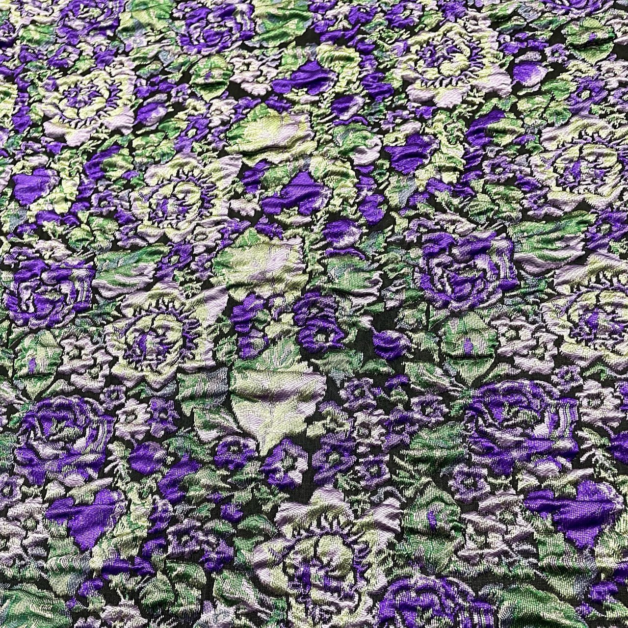 Это декоративная ткань, часто с объемным, выступающим рисунком .При изготовлении используется несколько типов волокон , что позволяет создавать сложные узоры. Несмотря на свою объемность, ткань прекрасно драпируется, выкладывается в нужный силуэт. Используется для пошива пальто, жакетов, костюмов, юбок, платья, как повседневного так и праздничного направления.
